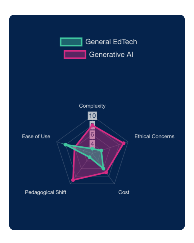 Compared to general EdTech, AI tools are perceived as more complex and present far greater ethical concerns around bias, privacy, and transparency. This necessitates a fundamental shift in pedagogy—not just new tools, but new ways of teaching, learning, and assessing knowledge.
